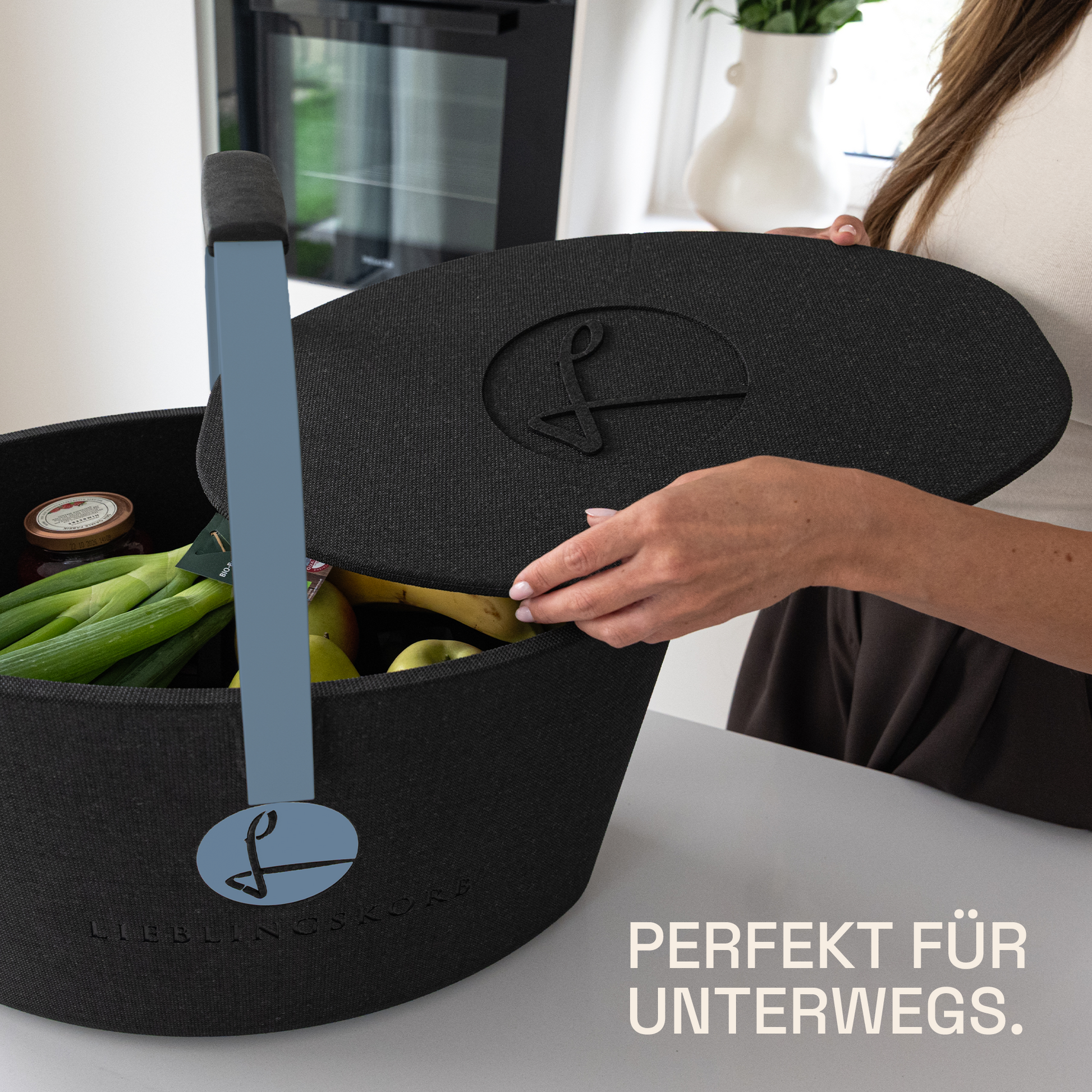 Der LIEBLINGSKORB Basic ist dank der ovalen Form ein echtes Platzwunder. Dieser Einkaufskorb in stilvollem deep black ist gemacht für alles, was dein Alltag bereithält. Dank der kippsicheren, formstabilen Konstruktion transportierst du deine Lebensmittel sicher und entspannt – selbst bei voller Beladung. Das thermoisolierende Material sorgt dafür, dass frische Lebensmittel länger kühl bleiben.