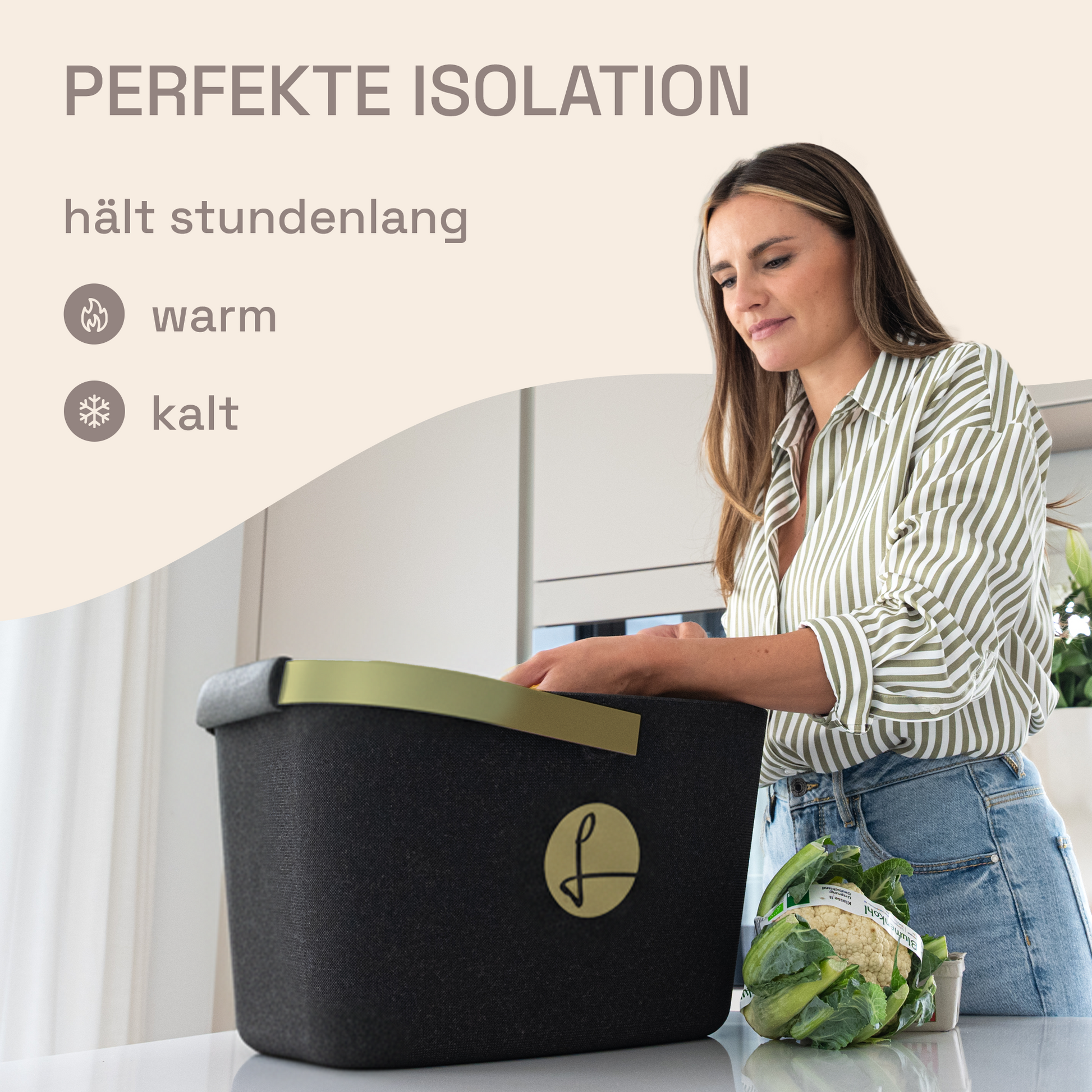 Ob für den Einkauf im Supermarkt, dem Transportieren von warmen Speisen oder den kleinen Vorrat zwischendurch – dieser eckige, kompakte Thermokorb ist dein neuer Alltagsheld. Die kippsichere, formstabile Verarbeitung gibt Sicherheit beim Tragen, selbst wenn der Korb gut gefüllt ist. Der LIEBLINGSKORB ist federleicht und trägt kein zusätzliches Gewicht auf.